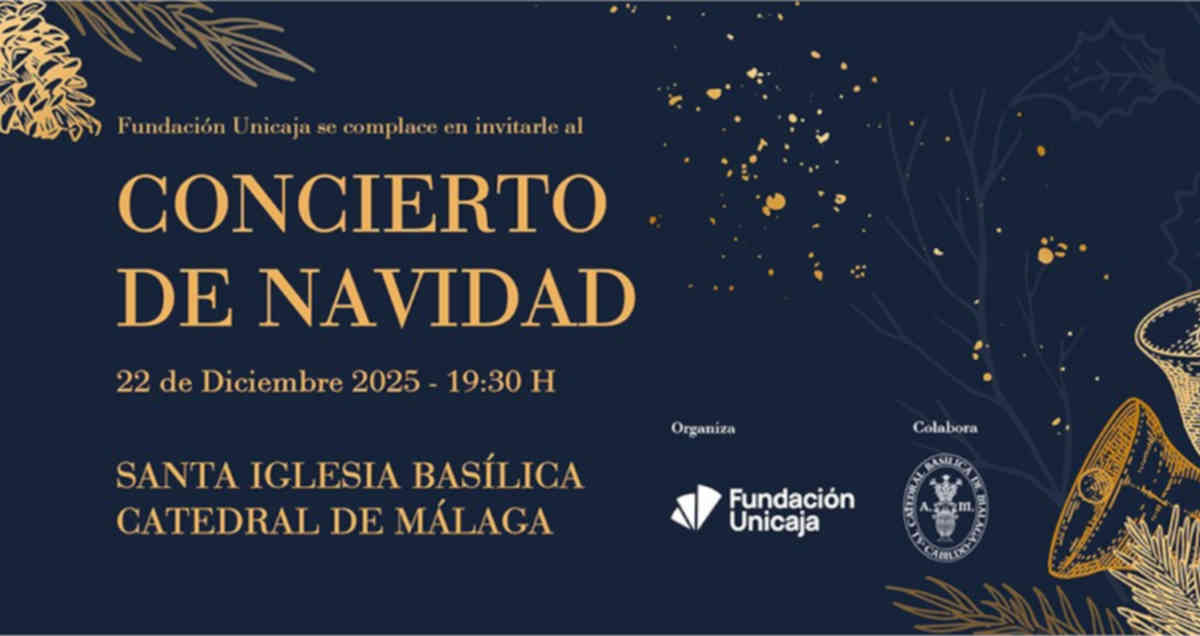 Fundación Unicaja organiza, con la colaboración del Cabildo Catedralicio, un Concierto Extraordinario de Navidad en la Santa Iglesia Basílica Catedral de Málaga el lunes 22 de diciembre a las 19:30 horas con entrada libre hasta completar aforo.